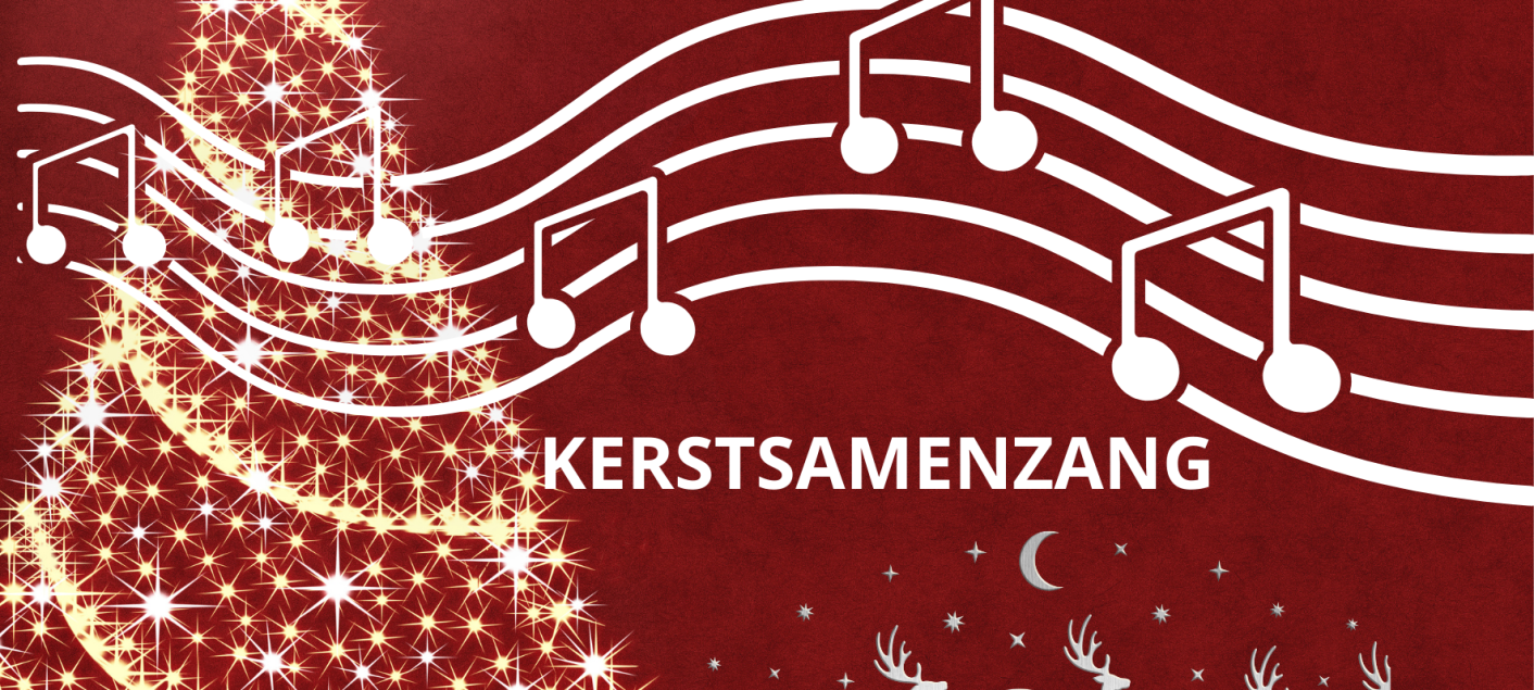 Samen kerstliederen zingen onder de enthousiaste leiding van Simon Neyt, muziekschool De Pinte.